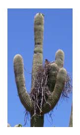 This type of cactus, the Saguaro, is commonly used in depictions of the southwest - but it actually exists only in the Sonoran Desert of Arizona. There is a bird nesting in the cactus. We also ran into a rattlesnake on the trail, and had to go around it! |