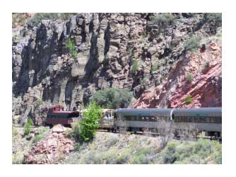 The Verde Canyon Railway does a scenic ride through the canyon (about an hour from Sedona); you cannot travel from one place to another on the train. But the scenery is great. At some points, you are on a trestle bridge high above the canyon; at others, you travel along the canyon floor.
